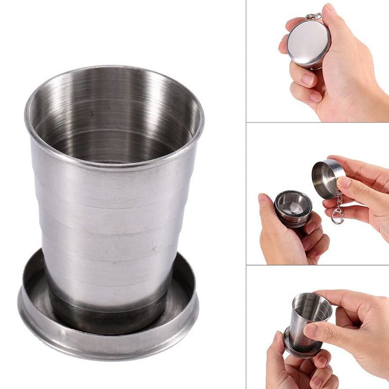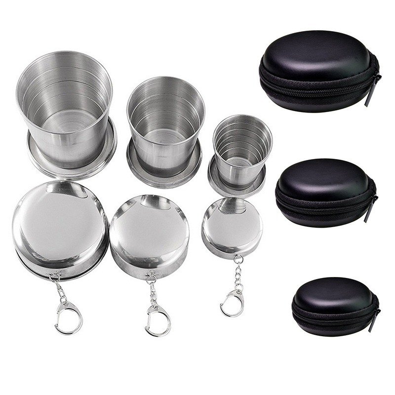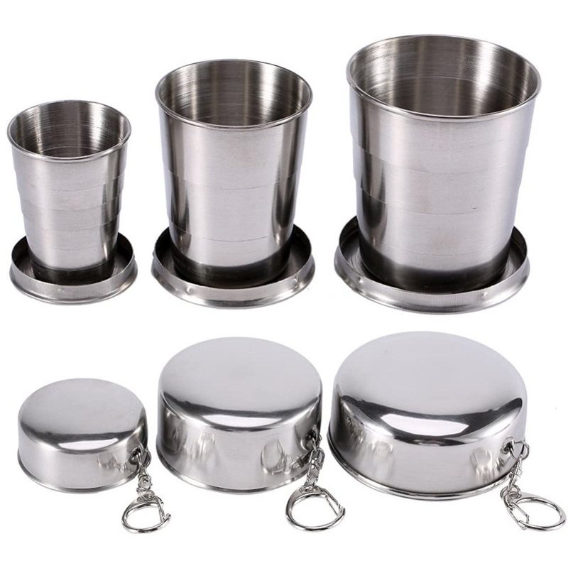 Stainless Steel Folding Cup; Portable Ultralight Collapsible Travel Cup; Outdoor Retractable Drinking Glass & EVA Case Set; Foldable Cup With Keychain